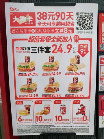 新奥尔良烤翅(2块装) / 香辣鸡翅炸鸡 / 新奥尔良烤鸡煲 / 薯条 / 吮指原味鸡(1块装) / 葡式蛋挞(经典)
