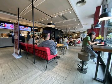与朋友在这儿碰面,中午时间人不多,位置都很宽敞。点了川辣嫩牛卷,双层鸡腿汉堡,奥尔良烤翅,还有两杯可乐,总共五十多元钱了。其实也不算贵,双层鸡腿汉堡超级好吃哦,特别的香。嫩牛卷也好吃,就是酱料感觉多了一些,要是能辣一些更完美了。总感觉肯德基更新新品的速度有点慢,不过出品一直有保证。…查看更多