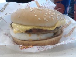 新出那个鸡扒包早餐,配一杯豆浆和薯棒,9元,鸡扒包好小一个啊,里面那块鸡扒已经放冷了不脆了,严重影响了口感,然后酱是番茄酱,毫无新意,对这个新品没爱了。。。豆浆自从喝过了m记的以后就觉得kfc的稍淡了一点,不过也不是差得很多吧,薯棒的话3根加起来的分量大概也和薯饼差不多,虽然炸得焦了点,但是味道还是能和薯饼媲美的~~~~查看更多