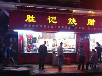 胜记烧腊应该也是老字号,有多年的历史,是朋友推荐我才去帮衬的。朋友介绍他家的烧鹅、叉烧十年如一日的好味。于是,我也专程过去看看。烧鹅 皮很脆,鹅肉非常嫩滑,吃起来有肉汁,没有一点渣。叉烧 应该在酱油、蜜汁等酱料中腌过,吃起来叉烧甜而不腻,咬下去很软有汁。他家也有做外卖,做烧腊饭之类,大约10元一份,不过看起来饭里的烧腊是乎比不上店里卖的那些,不过胜在实惠。 …查看更多