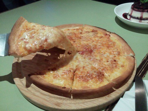 装修都系比较西餐的感觉,有西餐厅的氛围吧,以前未试过的时候就一直都非常想试下 呢度的芝士比萨,听讲一定要试试的,但系试过,感觉又好似唔系咁好,似乎有少许的 失望哦。三色芝士,本来想要五色的,但系有人话,其实都系差唔多,自己根本试唔出 所以然的。饼底比较薄,确实系现做的,但因为时间掌握唔够好,所以个边就有小小的 焦咯,得个脆啊,芝士味吧,都系几浓郁噶,拉丝效果好,但确实香味不足。…查看更多