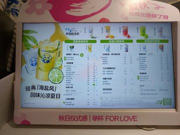 桂花酒酿奶绿 / 七窨茉莉鲜奶茶 / 草莓奶冻 / 豆乳玉麒麟 / 现蒸超厚芋泥奶茶