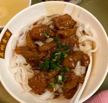 猪手焖得很入味,软淋,带有些许的烟韧,不错。还有河粉确实是小时候吃过的那种,真正用纯米浆做的,比现在常见的河粉都厚一些。蘸上汤汁吃,烟韧爽口,味道也丰富了许多。