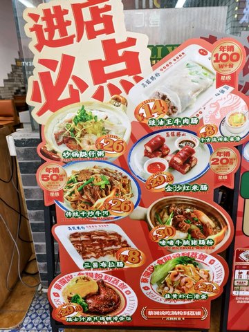 招牌三宝肠粉 / 荔湾西关艇仔粥 / 传统干炒牛河 / 荔银王牌肠粉 / 皮蛋瘦肉粥 / 红米肠