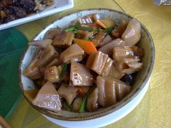 这家饭店主要是过来老人院看完老人的家庭帮衬的比较多吧,就在老人院正对面,周末的时候都是人山人海的,环境就不能太讲究了,因为都是类似于大排档的,就凑合着吧,消费价格不算很贵,出品一般般。莲藕煲花腩肉,分量相当多,莲藕煲得很淋,大多口感还是比较粉的,有些就不是很粉。味道总体还是不错的。