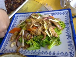 每次周末中午来,这里门口都停满了私家车,可能是因为附近的食肆比较少吧,环境很简陋,消费价格不算很贵,分量也都比较足,出品就中规中矩,很好吃倒也说不上。鱿鱼炒猪肚,都是一道比较家常的菜式,卖相可以,猪肚和鱿鱼都比较爽口,但是不算很入味,还有西兰花都比较爽甜。