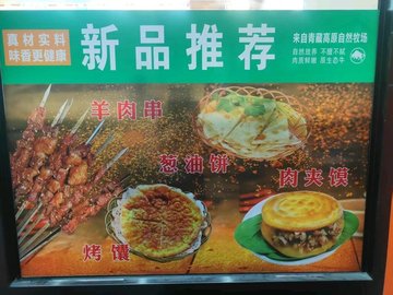 牛肉面 / 红烧鸡块拌面 / 牛肉炒刀削面 / 牛肉干拌面 / 葱油拌面 / 羊肉串