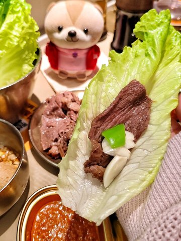 在领展中心城!有家烤肉店工作日也满座,看来挺受欢迎欵。曾吃这家也觉得出品可以的,这次再来吃一波😎。从福田口岸过来2个地铁站就到,地理位置方便。旁边商场还有港人喜欢的超市。店舖在M层食肆区位置,简约装修环境舒适,桌子不会太细可以放到多个食物。入座时附送韩式小吃和特色麻酱,配肉肉一起吃别有一番风味🙈。-甄选肉塔组合拼盘食物包括:雪花牛大力、雪花牛肋条、牛舌、横膈膜及口蘑。每天新鲜送来吃,色泽红润的卖相,不用放太多调味也吃得到鲜味。雪花牛大力有嚼感,牛肋条较香油脂味。牛舌鲜嫰爽口,横膈膜肉质嫰滑。配特色麻酱吃味道更香的感觉,这个酱是入座时上菜附送的。-冷吃年糕等待吃肉肉的时候,吃个软糯年糕呗。用了小木盘装著,放著雪白的年糕。冰凉软糯的质感,配著酱汁多了份香甜味,配黄豆粉口应较丰富。-肉肉另外点了老太太特色肥牛和瘦牛,两款肉质各有特色,一样的是肉质新鲜欵。肥牛肥瘦均匀,奶味香浓充满肉汁,外层微脆吃起来挺香口。瘦牛肉味较香浓,质地焦白细嫰,配生菜吃味道可以欵。-老太太特色肥牛拌饭卖相吸引味道挺香的,肉质鲜嫰酱味香浓。这个要点来吃的,把拌饭配土豆泥,吃起来质感软滑,多了份豆香味。想要多几个问店员就可以,是可以免费续加的。-火焰辣爪芝芝火鸡面席前加热味道真香,配著火鸡面充满韩风,趁热吃的质感较好。鸡爪肉质软滑,做得挺入味的。年糕质感软糯,火鸡面辣得过瘾。这个会有愈吃愈辣的感觉。-…查看更多