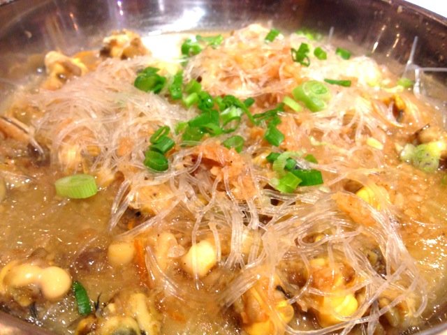 以为已经将中信附近嘅餐厅都试过一次,偶然经过呢度,貌似评论唔错,决定一试!呢度装修格局同毋米粥差不多,都系主打粥水火锅,亦都有各式炒菜餐牌都大同小异~连先上一锅热水烫杯碗筷子亦如出一辙4个人,点左5个菜豉油王炒陈村粉卖相唔错,有几块蛋舖面~略嫌豉油唔够~唔够味.最后要捞落D珍珠蚝度嗦味生炒菜心不过不失.味道亦OK.冇乜太大惊喜蒜蓉粉丝蒸珍珠蚝呢个颇惊艳.份量都OK.底底一层蒜蓉,上面都几多珍珠蚝,再来一层粉丝味道相当好,果然值得推介蒸鸡不过不失,吃得出同蒸嘅红枣粒,鸡肉都几滑,唔会好柴口香芋煎饺几有新意嘅馅,香芋蓉青豆粒外脆内软,咬落去满口芋头嘅香味呢餐4个人吃到超饱,人均35蚊味道好,价钱唔贵~推荐查看更多