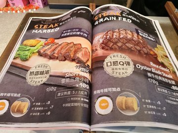 鲜肉安格斯西冷 / 鲜肉安格斯肉眼 / 西冷牛排 / 秘制豆腐 / 澳洲谷饲现切肉眼 / 巴马臣奶酪薯条