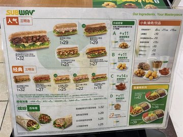 赛百味,是除了百胜和麦当劳之外另一知名的快餐品牌。品牌的创立(1965年)其实是美国人Fred Deluca为了赚大学学费而从Peter Buck那里得到的idea。他家除了主打的三明治外,还有沙拉和百味卷等。三明治的尺寸有6寸和12寸,女生的话选6寸就够。面包也有多种可选,不过外卖点餐时就跳过了此选择。而他家的三明治之所以叫潜水艇三明治,则是因为大号三明治的形状像潜水艇而得来的。【出品】6寸金枪鱼三明治,25。揭开面包的时候找了很久才找着吞拿鱼T_T默认的面包很厚面皮。6寸培根三明治,18。培根很大的一片,朋友因为不爱洋葱点餐的时候就剔除了。6寸海鲜蟹肉三明治,18。其实是撕碎的蟹柳,量不多,蛋黄酱调得比较淡。…查看更多