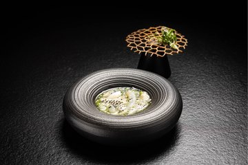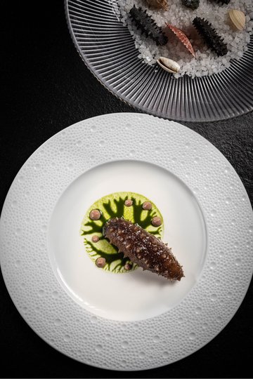 姜葱白切鸡 / 护国海参 / 鱼子酱卤水鹅肝 / 椰子雪糕 / 功夫茶汤 / 鱼子酱