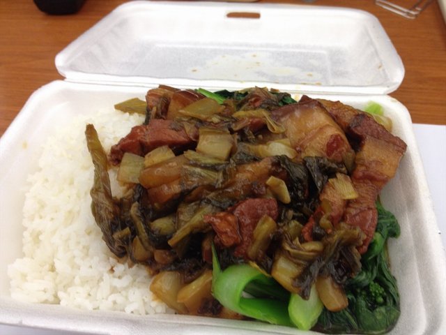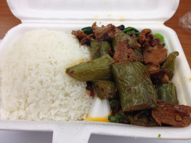 同事们中午都是吃都城啊,一起点餐时间有保证,不用等太久。不过菜式来来去去都那些,差不多要吃腻了。同事昨天吃的鸡蛋玉米炒叉烧,据说还不错,于是点来试试。打开饭盒就有点后悔了,炒鸡蛋好像很多胆固醇呢,何况这个鸡蛋炒得好像有点老了。玉米和叉烧粒都不是主角,配搭鸡蛋之后整个都很饱,如果不懒惰的话,我自己炒的比较好吃。都城的一个好处是基本上都能吃上青菜,但今天配搭的芥菜就不喜欢了,干干的没什么油份。查看更多