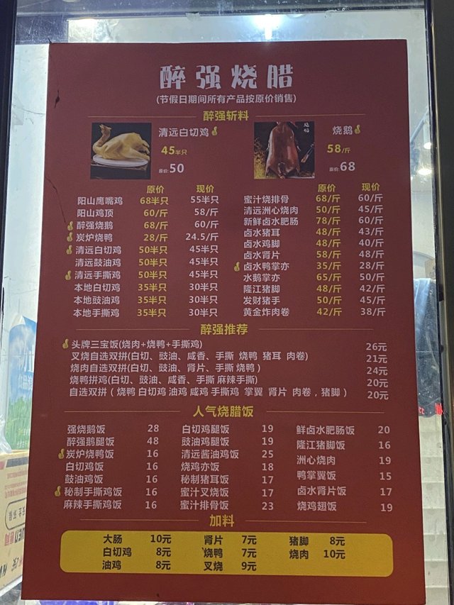 醉强烧腊 (华尚二街) (广州) 网址: https://s.openrice.com/KtLS0m0m9Hv00 地址: 广州荔湾区芳村华尚二街6号109号铺 电话: +86 18529377881