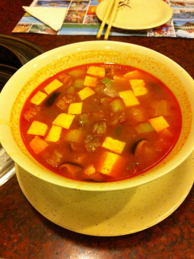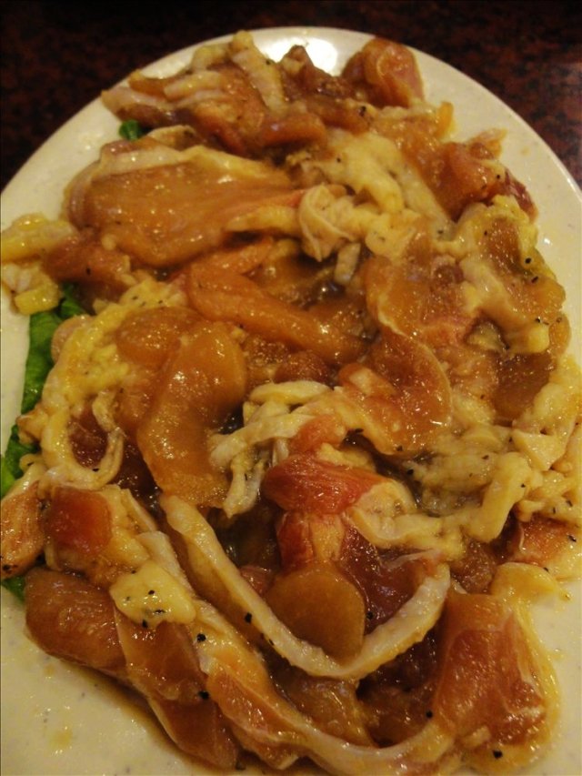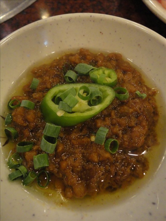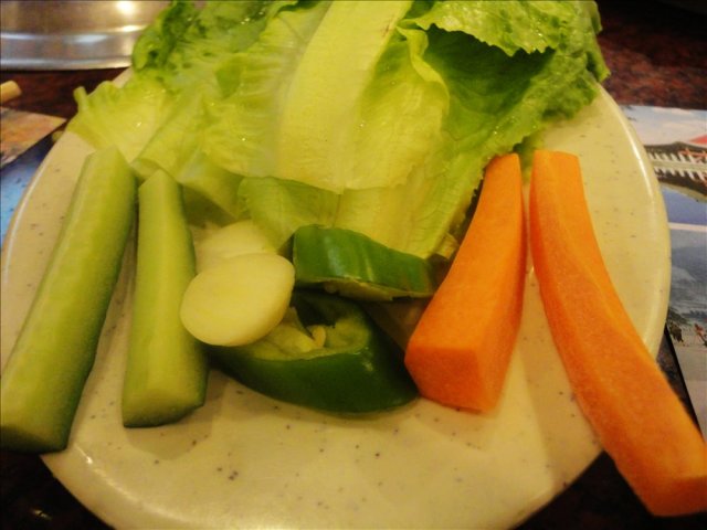 这个部长给我的感觉是从头到尾都冷冰冰地,没笑容让我这个百分十的服务费给得有点不爽。送的小菜很普通也很一般,和远景路那边免费的小菜相比味道种类都稍逊,还好。牛勒骨肉上来的时候卖相就很一般,不过我们也不会对卖相苛责毕竟肉是肉。关键是肉还呈两种颜色,肉褐色和红色。如果红色是新鲜为什么会有褐色,如果褐色说明牛勒骨有腌制过为什么腌制得可以如此不均匀??肉很快就熟了,味道还不差,其实我们是蛮享受自己烤制的乐趣所以特别叮嘱服务MM我们自己来,服务很周到的部长看到只剩下几块,立刻帮我们烤了它撤盘子。炒粉条:粉条比较多,很大的一盘,之前在喜来苑叫的是炒杂菜不过有粉条,味道肯定是后者要好,炒得比较有锅气也比较香(觉得有香油,韩国菜都很喜欢用?)。而这里的份量是真的够多了,粉条也比较有韧性就是炒得没什么香味,很普通。石锅饭:发现这里的饭和粉份量都很可观,管饱,一上来闻着是挺香,又是部长同志过来帮我们搅匀,我立刻大喊“停”,不过她人是反应了过来手还没有所以继续翻了两下再看着我们,这时另一位部长经过,就说:人家是要照相。后来还到厨房从新拿了一只生鸡蛋帮我们放下去。觉得这位部长想得很周到,自然比较贴心。闻和吃还是有分别,这里的食物真的没有我们之前常吃的那种香油的香味,总体来说一般。本来还想勺点饭焦,结果发现很难勺之余勺出来的饭焦还是一粒粒而且很黑很硬,明显是烧得过度了~~不是那种好看好吃好香的特色。…查看更多