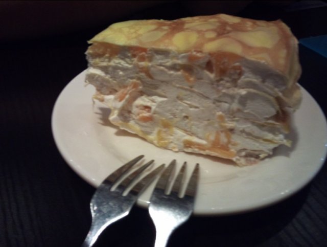 差不多晚上九点了,来到这里依然人多,还有人在等位的,店子很小一家,还以为也有二楼的,谁知道没有,只有在一楼跟其他来吃甜品的人挤一挤了。点了个芒果千层和芒果肠粉,芒果千层一层一层的芒果和奶油加在一起,味道感觉淡了点,再甜一些就好了。芒果肠粉,说是肠粉,还以为真的跟肠粉一样是用米粉做的,原来不是,只是样子像而已,白色那层应该是果冻之类的东西,味道还行吧,芒果也很甜。查看更多