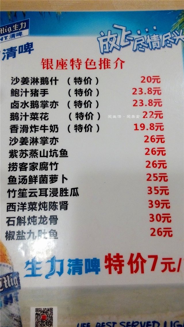 一直经过银座都能看到的场面,有几次想去都因为不想等位而作罢,周一的晚间虽然人多,但两人位还是有的,虽然像是进了烟场和菜市场,但却不影响我又能品尝新美食的心情。餐厅应该装修过,价格没有想像中或者某人的记忆中那么便宜了,平均35元左右的菜式,选择还是挺多的,服务不错,没有同类型档次的店中那些黑脸不耐烦的情况出现,茶甚至比鸿星的还好上一些。蒸的砵仔饭虽然价格贵上了些,但确实口感不错。怪味大肠33元,确实很怪味,咸、甜、酸、辣都齐全了,但却怪异的毫无违和感,口感稍有嚼劲,牙不好的建议不要尝试,大肠处理得很干净,没有异味,个人还是比较喜欢。沙姜淋鹅杂特价20.8元,分量不算多,胜在真材实料,一副鹅杂齐全了,而且调味还不错,沙姜用的是刨碎条的方式,提鲜之余还增添了口感的层次。鱼汤鲜菌萝卜25元,汤是真正的鱼汤熬制,鲜而不腥,甚至不小心还能吃到碎鱼鳍,刨薄片的萝卜很鲜甜,可惜蘑菇相对少了些。查看更多
