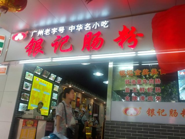 这家银记肠粉位于宝业路8号,他家的肠粉在广州很有名气,店面不大,总是挤满了食客。也许是抱有太大希望,对于味道来说没有想象中那样惊艳。牛肉肠粉味道很鲜美,牛肉也很嫩,但牛肉给的着实不多。倒是他家的米皮爽滑而有韧劲,不容易断掉,感觉很不错。鲜虾肠粉感觉更加一般,小份大概有四五只虾仁吧,只吃到酱油的香味,虾仁的鲜味反而比较少。个人最喜欢鸡蛋肠粉,鸡蛋的香味混合酱油的甜味(他家酱油有点甜),很特别也很香。几乎是每桌必点的艇仔粥感觉一般吧,鱼片很少,花生比较香。…查看更多