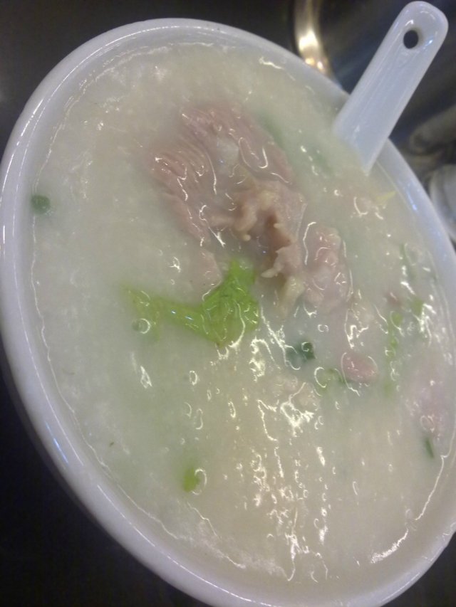 吃得多M记的早餐,有时候,也会想念吃中式的粥。银记的粉肠粥,是我过几个月会想吃一次的粥。主要是粉肠我想吃,我也知道这类东西不要常吃,不太干净。可惜,控制不了自己对肠类的想念。哎。。。人要有控制力嘛,所以,这次我要求自己要混搭,粉肠+肉丸。就不用吃太多粉肠啦。8元的粥,打包0.5元,也不便宜噢,一个粥就8.5元,成本贵啊。大大一碗,不用再吃其他了。粉肠鲜脆就好吃,大大颗的肉丸,加点白芝麻更香。吃完一碗就好饱了。粉肠粥,迟点再来回味你唷!查看更多