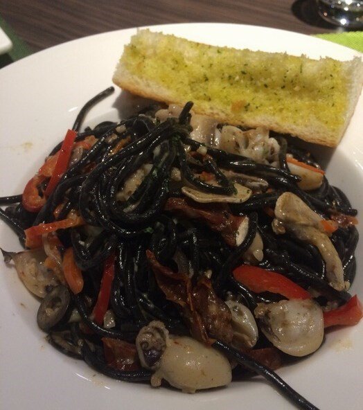 最近挺火的西餐厅,在江南西路中国石油南方大厦旁边,位置挺好找的。据说前身是肠粉店,好难想象现在变身西餐厅。店铺里都几大,开放式厨房,抽风处理得当,不会觉得有油烟味。价格方便,丰俭由人,按需选择啦。大虾蒜烧墨鱼面,49元,招牌菜肯定要试试啦,确实也不错,有三只大虾,好好吃,墨鱼面也好香,爽滑。芝士牛肉酱意粉,40元,用料很足,味道不错。越式炸春卷,30元有六块,外面挺脆,不过里面的馅料一般,比越南餐馆的春卷差得远。付款有得打折,折后117,也挺划算的。…查看更多