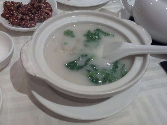 非常满意这家阿一鲍鱼的服务态度,由服务员迎上楼以后,就有好几个经理热情地来招待我们。在这里吃饭点套餐会比较划算,所以点了一份148元的商务行政套餐,鲨鱼骨汤炖翅不仅卖相好,而且口感浓稠,味道十分香浓,品尝得出是真材实料的。海鲜粒泡饭真的是用汤来泡着饭吃,里面的海鲜比较多,但是味道一般般。查看更多