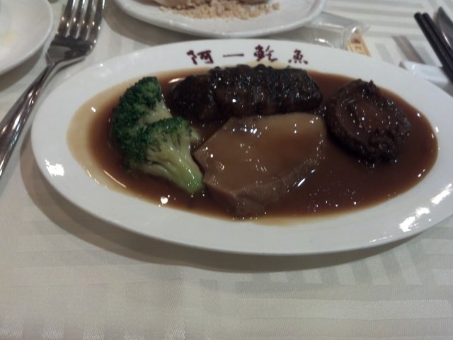 阿一鲍鱼也是挺高档的餐厅,这里的鲍鱼是不用说的了,我好想也就是吃过一次而已,而且是别人请客,干鲍的味道确实不错,所谓的鲍鱼汁就是这样了,口感算是软软嫩嫩的,有些类似蘑菇的感觉,比较爽滑吧,不过价格真心的贵啊。鲍汁焗海参算是性价比亲民很多的了,海参都是带刺的那种,口感相当的爽滑,而且鲍鱼汁很足,拿来捞饭挺合适的。查看更多