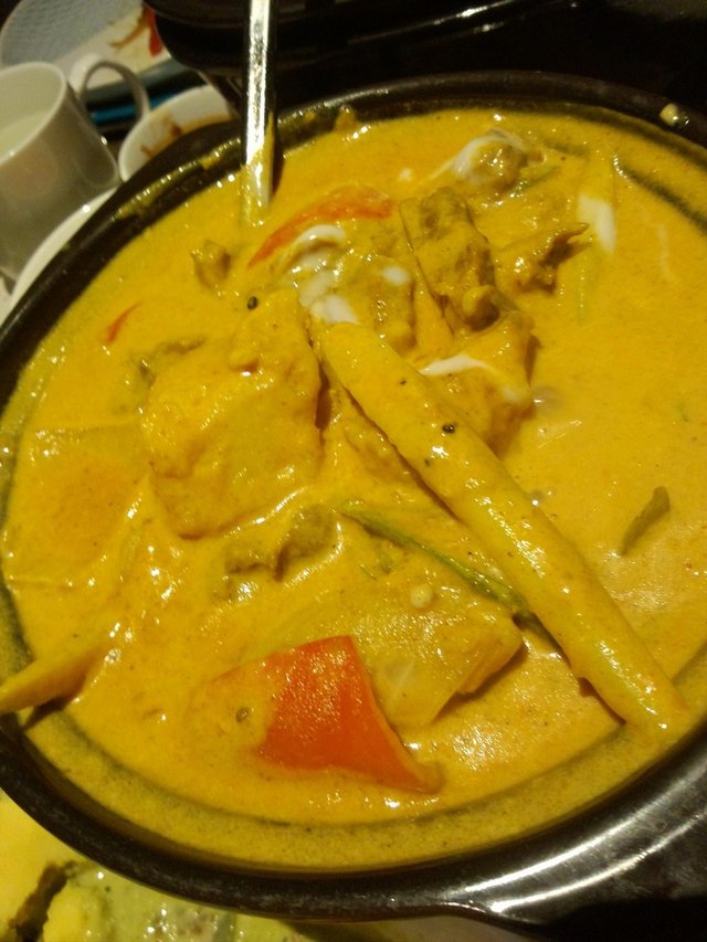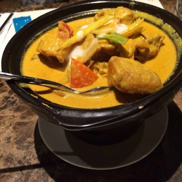 环境有点昏暗,有点小资feel,餐具看上也挺简洁的,座位间隔合适,坐得也挺舒服的,服务也挺周到的,适合情侣、朋友聚会,点了份咖喱牛腩,咖喱不辣很有椰汁味,牛腩也焖得较嫩,海南鸡肉质很嫩,鸡肉下面压着几根芥兰,吸收鸡汁后的芥兰也有鸡的香味,冬阴功汤会有点辣,酸味恰到好处,但料有点少,只有两三只虾。查看更多