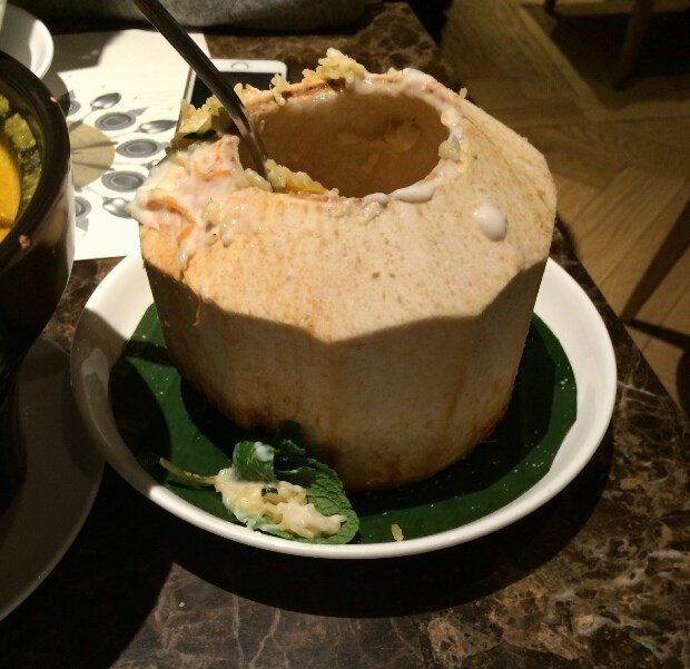 这家餐厅位于天河路208号天河城内5楼,感觉泰国菜和越南菜的风格都差不多,都是咖喱冬阴功一类的。来他家一定要点咖喱大头虾,是吃过的料理里大虾的个头最大的,口感也很赞,咖喱的味道非常香,黄咖喱比青咖喱的口味更好些。冬阴功汤的味道还不错,酸甜口味,料给的比较少,只有两只大虾,几个青口和若干菇类,分量适合三个人喝。还有一种用椰壳撑着的海鲜饭,椰香味很纯正。人均大概120左右,性价比还可以。查看更多