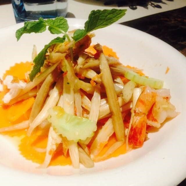 蛮有雅致情调的一间越南餐厅,灯光调试也是刚刚好,装修简单舒适,价格会稍微有点贵,但是环境和服务人员的态度确实不错,蒜蓉炒莲藕苗,莲藕苗爽脆清甜,但味道稍微淡了点,冬阴功海鲜汤很不错,喝起来根本不觉得辣,就是酸度的非常好很开胃,但里面的虾好小一只份量不多,而且吃起来不太新鲜的感觉。查看更多