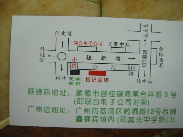 顺德松记食店 (广州) 网址: https://s.openrice.com/KtLS0m0XRO000 地址: 广州荔湾区芳村鹤翔路12号鑫都宾馆内(近广钢招待所) 电话: +86 8189 8773