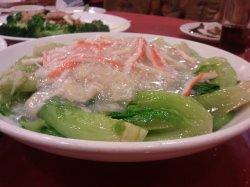这路段基本就这一家粤菜馆~改了名字~~还刚刚装修完~~室内装修味道还是挺浓的~很大的甲醛味道~~还看见有工人在安装小扇门~~在不停地做小工程咧~~不过装修完之后~~确实感觉挺漂亮的~~楼顶的吊灯十分耀眼~~感觉比较堂皇~~不过冷气系统有些问题~~我坐的地方就如在北极~靠近楼梯的就如在非洲~一冷一热十分悬殊~~很可笑的是~这店基本都是10人大桌~~我们一行4人~服务员把我们带到的大桌·``态度傲慢的说等一下我们要和别人搭台!我没想到现在的酒楼竟然还允许搭台的~~明明就是酒楼设置不科学~服务员态度也非常恶劣~~而且卫生情况有待提高~~灰尘很大~因为还在装修的缘故~出品也一般~~就是比较实惠~~椰汁香芋南瓜茨实~分量还是可以的~~但是南瓜很削~~芋头很爽~很硬·~没有口感~~茨实也感觉没熟透的样子~~没有椰汁的味道~很甜~差评!!…查看更多