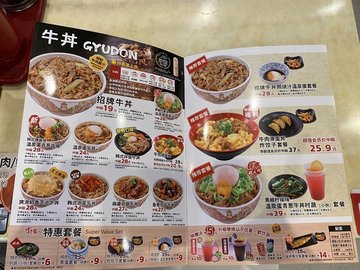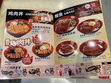 原味牛丼 / 大阪烧牛丼 / 章鱼小丸子 / 日式爽滑蒸蛋 / 炸猪排咖喱 / 牛肉鳗鱼双拼丼