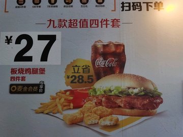 还没有下班就开始想念薯条的味道。。第二天马上约了朋友出来逛街。。当然少不了是点麦当劳的板烧鸡腿。。到现在还是喜欢大口吃肉的感觉。这个板烧鸡腿应该就是我最喜欢的麦当劳的套餐。。现在新出的所有套餐在这里都是浮云呀。。感觉麦当劳的薯条还是不错。。甜筒的话还是喜欢肯德基。。一个超值晚餐。。板烧鸡腿堡。。薯条。。可乐。。简简单单就是一顿了。。板烧鸡腿最重要就是就是多肉。。酱汁也是很浓郁。。整一个都是香喷喷的。。让人流口水。。薯条不用说一定是要趁热吃。才是最好的状态。港出锅的时候是最香脆。。外酥里嫩。。可乐还是不加冰。。加了冰总感觉是很稀释。喝道最后都是没有味道。。就是一点甜甜的而已。。…查看更多