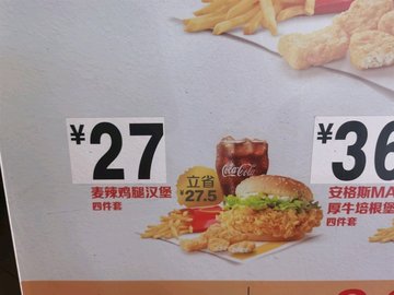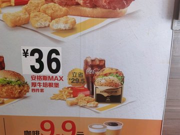 超值午餐:1个汉堡+1包薯条+1杯可乐,价格也是一年一年看涨。经询问,薯条可以换成玉米粒,可乐换成咖啡。挺灵活的,赞一个!午餐时间,人很多,找个位置都不容易。最不喜欢的是,里面没有洗手间,想洗个手还要出到外面来。…查看更多
