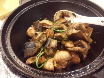 黄鳝世家有好多间分店,开始的时候觉得它家的环境还是比较有档次的,但是现在已经越做越差了,装修也显得陈旧,出品味道也不如以前的好,价钱也升了。啫黄鳝煲,用瓦煲来啫,煲好大,里面的黄鳝不算多,只是简单加了些香葱蒜头来啫,闻起来的确几香,吃起来味道就一般,D黄鳝啫得五够入味,而且是大肉鳝,肉质也不够好吃,老娘肥叉,这个也一般,真是比较肥,好彩酱汁比较咸,吃起来口感没有太腻。