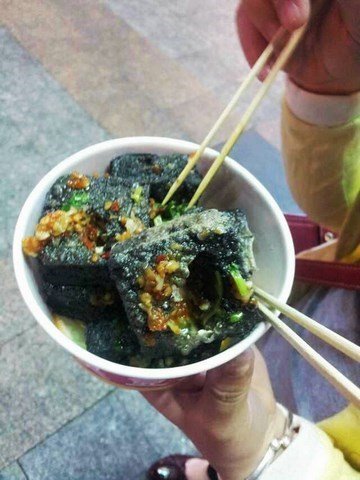 行过上下就荔湾广场,见到中间店排长龙,同学说想吃臭豆腐,被逼跟住排长队。远远的队伍都闻到臭豆腐的臭味,果然够“臭名渊博”。等左20几分钟,总于买到臭豆腐啦。用一次性碗装住,摆满黑黑噶臭豆腐,都几核突。外面噶汁有香葱和蒜头,都几香口味道5错。而豆腐外层炸的很脆,里面很嫩很滑。体落去丑丑噶豆腐,味道确异常的好,一下子自己就吃完一碗,都觉得5够候,难怪生意甘好啦。查看更多
