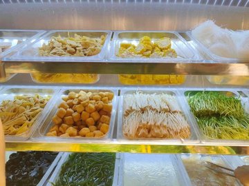 招牌红酸锅 / 深海鱿鱼须 / 三鲜骨汤 / 爽滑黑鱼片 / 有料虾滑 / 贵州黄牛肉