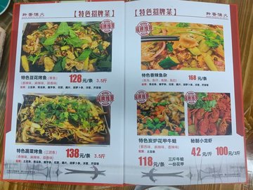 番薯叶 / 紫苏钉螺 / 四川小酥肉 / 紫苏石螺 / 香辣特色烤鱼 / 麻辣特色烤鱼