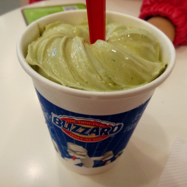 平时逛街的时候看到DQ总会想去买上一杯暴风雪,他家会因应季节的不同推出新口味,所以每次都可以吃不同的味道。总的来说这么多款味道里面我还是最喜欢抹茶味的雪糕,有着淡淡的抹茶味,又不会很甜,抹茶的味道很香,很适合夏天吃,很解暑。