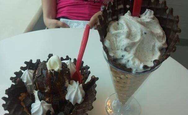 DQ冰雪皇后的雪糕最大的亮点与卖点就是“屹立不倒”,雪糕出来后服务员会倒过来给你看一下的,真的不会掉下来哦。喜欢抹茶味的,很香,而且这里的雪糕特别滑,而且不是稀的,粘稠度比较高,喜欢有口感的。还有喜欢芒果杏仁暴风雪、华夫饼,特别是华夫饼,很多配料,很丰盛哦。查看更多