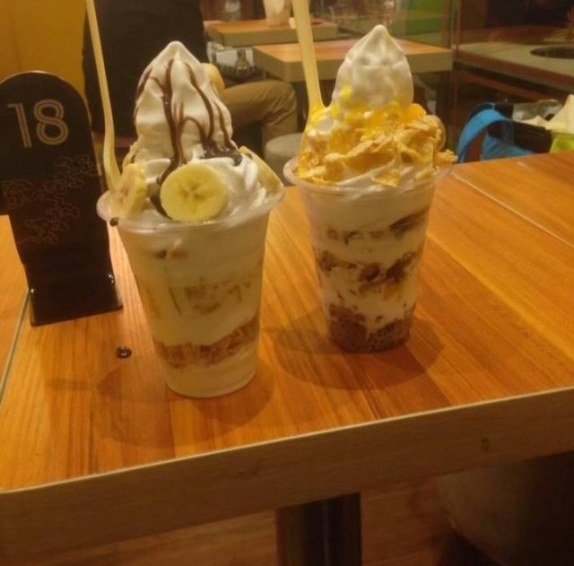 每次去天娱广场看电影,路过冰雪皇后,经常看到服务生在派宣传单。一般都会停驻脚步流连一下。店内空间比较窄,很多人都是买完带走的。冰雪皇后家雪糕很绵很滑,口感很好,而且密度很高,可以整杯倒过来都不会洒,个人推荐抹茶味和优格味,抹茶杏仁很清新,一点都不腻,里面还有杏仁粒,好好吃!有时令限定的朗姆葡萄和麦妙脆也是不错的选择,配料推荐奥利奥和华夫。有趣的是服务生每次都会示范把杯子倒过来,以证明DQ够浓稠不会掉下来。查看更多
