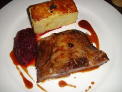 这间店是我一直很爱的西餐厅,是一位外国人开的,餐厅环境其实蛮简约的,情调十分温暖,暖黄的灯光,映射在纯正的木材上,透明的香槟杯中。当夜幕降临之时,座位对面传来温柔的音乐声,现场演奏的几位国外人,极具情调,这个地方不仅是适合情侣,只要你喜欢美食,这里都适合你。香槟:作为一杯味道相对比较清淡,香味适中的香槟酒,特别适合用来做开胃酒,从刚倒出来的那一刻开始,它体内的气泡就像是变魔术一般,好像有一条隐形的美人鱼在里面,持续的吐着小气泡,快要翻云覆雨的感觉。冰冻的喝一口,整个口腔的味蕾都被唤醒了,不自觉便喝下一杯,肚子大声呼唤着主菜的登场。文火慢炖牛肋扒:超级爱这一件经过12个小时炖煮的牛肋扒,表面看起来颜色有些发黑,从侧面能看到牛肋扒,丝丝分明的肉质纹理。轻轻切开,牛肋扒内部竟出现粉嫩的微红色,轻压一下,里面的酱汁缓慢流出,这完全无法用诱人来形容,简直都快被它俘虏了。切下一块,醮少许酱汁,放在嘴里,瞬间像起舞一般。一口肉,一口薯泥,感觉真爱就是这样了!科罗拉多牛仔骨:一根长得像棒槌似的肉棒,无须腌渍,只需要在烹饪之前,给整个牛仔骨轻轻按摩,帮肉质放松,口感会更嫩。在香煎的时候,要加入牛肉熬制的牛肉汤汁,不要贪心,一小勺即可,如果酱汁过多,烹煮过程无法收汁。然后再加入酸甜的水果,比如焦糖苹果,蓝莓和葱头,每一次都为牛仔骨注入流动的血液,把牛仔骨变成鲜活的生命。…查看更多