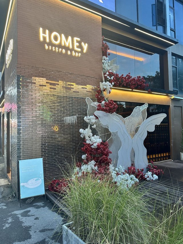同情人唔知去邊度食,點算好?一於北上搵一間好餐廳,今次嚟到HOMEY, 真係一流🫶🏻[食後感]📝1. 香煎鵝肝·熱帶果蓉香煎鵝肝外層金黃酥脆,內裡軟滑如綿。搭配的熱帶果蓉,酸甜適中,與鵝肝的油脂感形成鮮明對比,整體口感更為清新,第一口就能感受到味覺的層次。2. 刺身澳帶左馬蹄莎莎新鮮的刺身澳帶肉質結實且富有彈性,細膩的口感回味無窮。佐以左馬蹄莎莎,增添了清脆的口感。3. 澳洲谷飼5+皇后牛扒五成熟牛扒肉質柔嫩多汁,每一口都能感受到肉汁的豐富,搭配海鹽和黑胡椒的簡單調味,完全保留了牛肉的天然風味。4. 檸檬草酸辣蝦湯燴青口酸辣味道十分突出,檸檬草的香氣帶來清新的感覺。青口的鮮嫩與湯底的酸辣相結合,口感層次分明,令人食欲大開。每一口都彷彿在舌尖上跳舞,清新的味道持續回味。5. 蜜瓜火腿蜜瓜的甜美與火腿的鹹香形成完美的對比。蜜瓜的水分充足,口感清爽,火腿則帶有濃郁的風味,兩者相輔相成,好感受到夏日的清涼。每一口都是一場味覺的盛宴,簡單卻不失精緻。6. 黑松露巴斯克芝士蛋糕芝士蛋糕的口感極為絲滑,黑松露的獨特香氣令整道甜點更具層次感。蛋糕的底部帶有輕微的焦糖化,增添了香脆的口感,而上層的芝士則是濃郁而不膩。7. 愛克斯之吻飲品的味道十分獨特,營造出浪漫的氛圍。這頓餐點的每一道菜都充滿了驚喜,無論是味道的層次還是口感的變化,好感到非常滿足。…查看更多