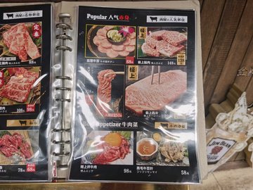 厚切牛舌 / 和牛极上厚切腹肉 / 和牛牛肋条 / 极上脑肉烤肉 / 杏仁豆腐 / 厚切腹肉