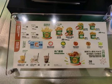 酸奶洋葱味薯条(大份) / 辣椒烧烤味薯条(中份) / 卷卷薯条 / 烧烤味薯条(极限大份) / 鸡米花 / 薯宝