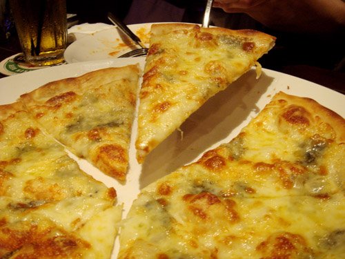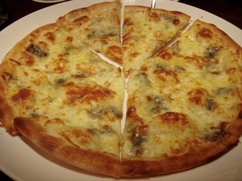 食物方面,,因为黛丝有必点的四芝士Pizza,,所以我地再点佐意粉等Share就得了..整晚都系注重气氛,,食物倒是其次..卡车司机三明治,,有好厚的芝士及熏肉,,分切Share..炸鱿鱼圈..比较一般,,而且有走气的感觉,,食后油油腻腻的,,不是很欣赏..12寸的四芝士Pizza,,果然系好推荐..原先Daisy都担心我地几个会唔会接受唔到呢个重口味..但我想讲的是,,中意食芝士的人,,无论如何点都要试一次呢个..蓝芝士好重味道,,超级超级正,,而且烤完之后更加激发出香味,,配上薄脆的饼底..宜家谂起都流晒口水!!12寸售价70蚊,,材料重手,,虽然感觉偏咸..但绝对值得一试..最后仲有个番茄汁海鲜意粉,,属中规中矩之作..最后5个人埋单443蚊..查看更多