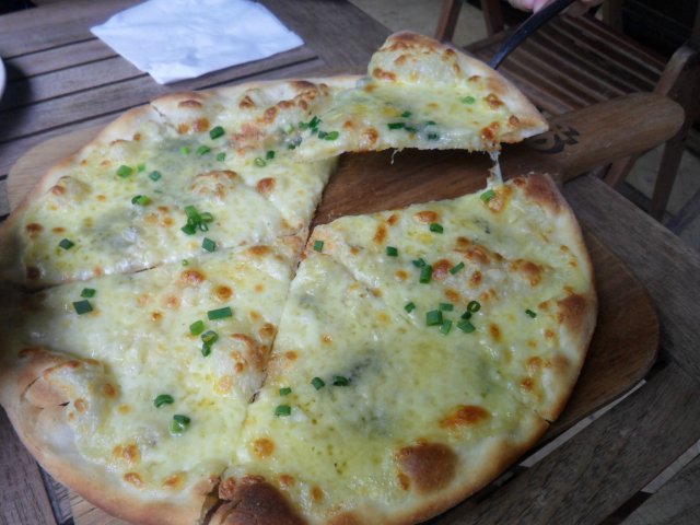 虽然细细间,但系环境真系唔错,几有小资的情调的,他家的出品都几好的。某日,朋友约我过来倾吓计咁,我地就点咗四芝士pizza同大杯啤酒。pizza的饼底好薄的,上面铺满浓郁的芝士,闻起来都好香啊,吃的话就唔算太明显的,我就吃唔出四种唔同的芝士味啦;而啤酒的味道还可以,都几纯的,饮完之后都仲有回味的,吃完浓郁的芝士pizza,饮饭啖啤酒系几舒服的。查看更多