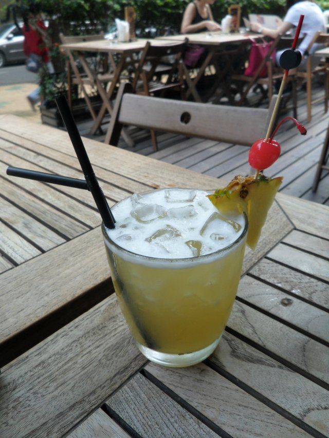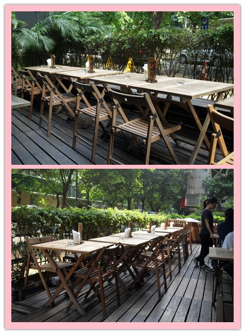 之前有朋友在这里喝过酒,说酒和小吃都不错。地处市中心小区却比较僻静,来往的人不多,聊聊天下午茶是个不错的地方。坐在里面会觉得很舒适,坐到外面也可以享受一下草木的气息。我们去的那个下午比较好,有点凉风,更加适合在外面用餐,唯一有个缺点就是草木一多,昆虫也不约而至~~餐厅的价钱中等偏点上,小的9寸PIZZA在45到60的范围,意粉阿饭阿在40左右居多。酒牌我没研究 ,不过饮品的确不贵。虽说是下午茶,其实也就差不多点半而已,所以我们一人一杯饮品加两个主食。白葡萄汁海鲜意粉,是白葡萄汁不是白汁,它不粘稠我也可以理解,但是酱汁非常得少,而且不上味的,根本包不住意粉和海鲜,所以一冷了海鲜就有点腥了。为了吃这个意粉我们下了很多很多的黑胡椒和辣椒油,完全不是吃它的本味了~~只能说海鲜是有的,但是味道是无的,下次不会再点。我们点了一个芝士PIZZA,非常地香,上来的时候我们一边照相一边就闻到浓郁的香味,这个PIZZA是用4种芝士做成的,香是必然。60一个9寸的价钱可能相对贵一些,但是好吃是一定的,皮也是薄薄的很脆,正是我们都喜欢的口感~~里面有种是蓝芝士,净吃我是不行的,但是用来焗的话倒是很风味,就是有点苦,太多蓝芝士的几块都给朋友消灭了,所以我吃的几块没有那么苦涩~~这个PIZZA推荐阿,如果你喜欢芝士的浓香也不怕带点苦味的话可以点点的~0~我们点的卡布奇诺和拿铁,外表很相似,连画的花也是~~泡沫挺厚的,可是口感是炭烧过了点,带点苦涩,连泡沫也是苦的~~连一向不喜欢下糖的我也很想下,最后还是没有下吧。其实可能是我个人比较喜欢醇一点不那么炭烧味咖啡的缘故。建设六马路本来就很多这类咖啡馆,价钱也是中上的水平,不过买的就是气氛和环境,这里真的挺适合来点小资感的TX的。查看更多