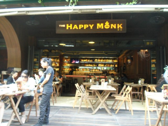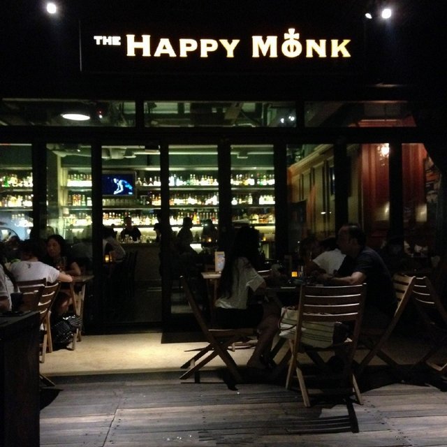 the happy monk给人感觉是个很放松的地方,一般都是晚上去,偶尔会发现坐着隔壁桌的是个外国人,还能聊聊天,环境还不错,室外会比较暗,有点小情调,很适合情侣来,或者跟三五知己来也不错。价格倒是不便宜,出品还算ok,点了杯热红酒跟一份意粉,热红酒上来是温热的,很香,喝下去还不错,意粉不是很大盘,贵在精,面包挺脆的,烟肉很好吃,有点咸咸的,芝士味道不算特别浓,所以不会很腻,吃完有点撑。越晚越多人来。值得一赞的是服务员挺好的。查看更多