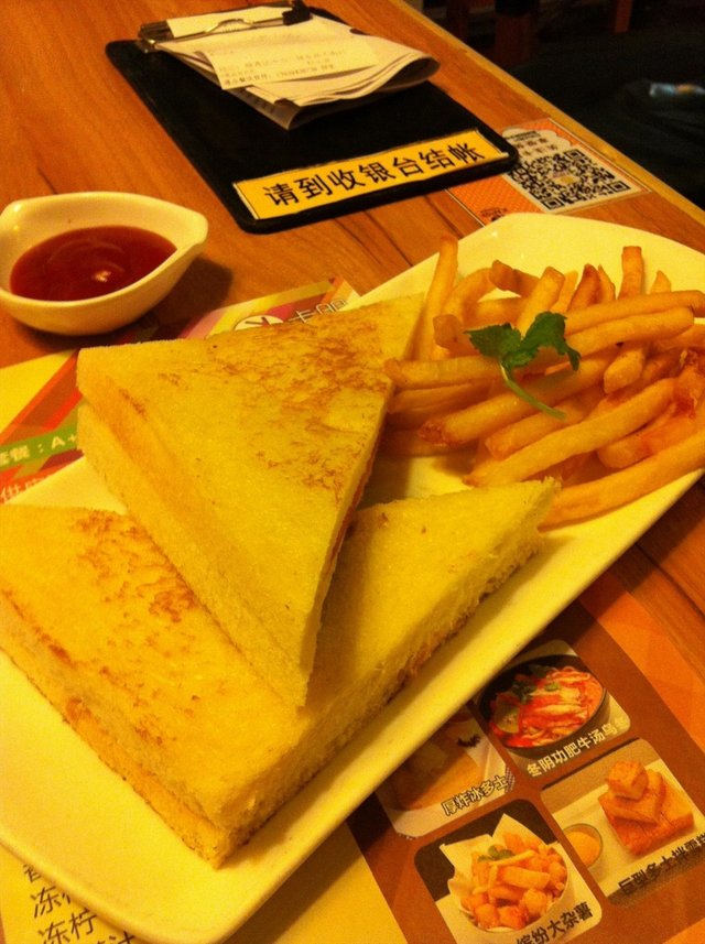 下午茶 幸运鱼等级42014-07-3167 浏览 关注 一个人跑去卡朋下午茶。选择挺多的。 不过我不想吃辣又不想吃意粉。就只挑了这个啦。 芝士火腿三文治拼薯条。 出品比较一般。火腿味道怪怪的。芝士挺香的。面包烘过的。不错。就是不够热。 薯条现在换了小条,硬硬的不好吃。 加上一杯饮料,总共23块钱。还可以吧。 感觉江南大道那家的出品会好一点。 服务很一般!以上食记乃用户个人意见 , 并不代表OpenRice之观点。赞好分享下午茶 卡朋西餐馆 https://s.openrice.com/KtLT0m0ZU4B00检举 张贴 评分3味道3环境3服务3卫生3抵食用餐途径堂食